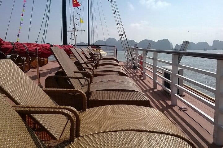 Start the next day with Tai Chi on the deck before exploring the traditional Vung Vieng Fishing Village by rowing boat. The trip ends with a scenic cruise back, offering final views of the bay’s stunning limestone formations. Perfect for travelers seeking a quiet, nature-filled escape.